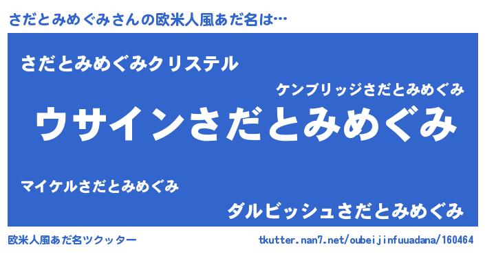 | 男性向けラノベタイトル風あだ名 | 『さだとみめぐみの嫁は女の子じゃないと思った?』 |