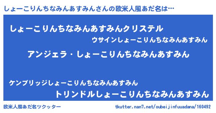 | ファンタジー風あだ名 | 『エターナルショーコリンチナミンアスミンー』 |