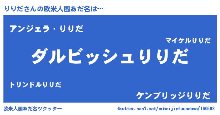 | 男性向けラノベタイトル風あだ名 | 『りりだという概念が存在しない退屈な世界 』 |