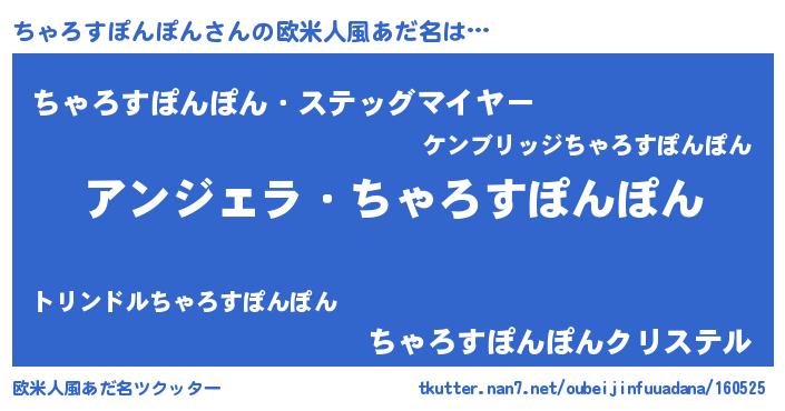| 男性向けラノベタイトル風あだ名 | 『はたらくちゃろすぽんぽんさま!』 |