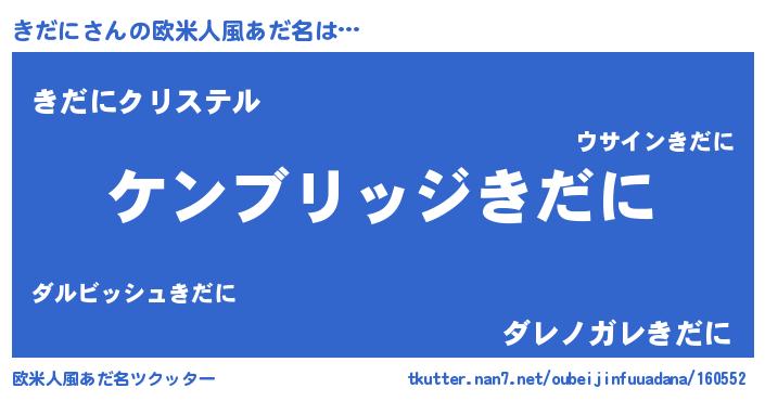 | 男性向けラノベタイトル風あだ名 | 『Re:きだにから始める異世界生活』 |