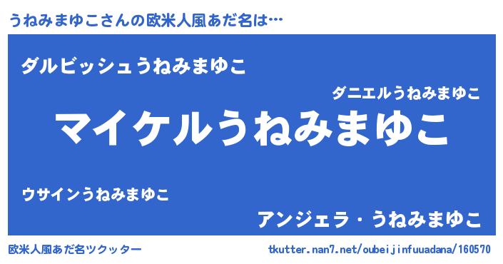 | 男性向けラノベタイトル風あだ名 | 『ウネミマユコアートオンライン』 |