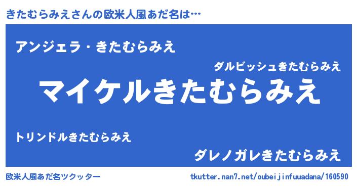 | 男性向けラノベタイトル風あだ名 | 『キタムラミエアートオンライン』 |