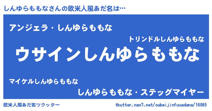 | 男性向けラノベタイトル風あだ名 | 『しんゆらももなの嫁は女の子じゃないと思った?』 |