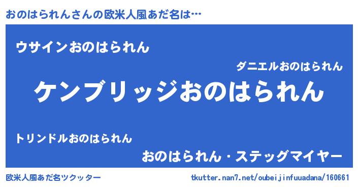 | 意味不明あだ名 | 『自称おのはられん』 |