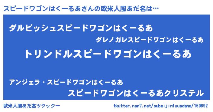 | 男性向けラノベタイトル風あだ名 | 『スピードワゴンハクールアスレイヤー』 |