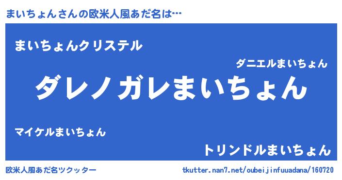 | 男性向けラノベタイトル風あだ名 | 『この素晴らしい世界にまいちょんを!』 |
