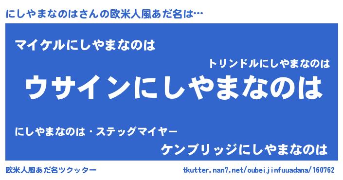 | ピコ太郎風あだ名 | 『ニシ一郎』『ニコ二郎』『ニニ太郎』 |