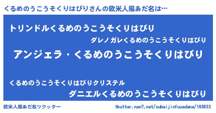 | 料理風あだ名 | 『栗とくるめのうこうそくりはびりのマフィン』 |