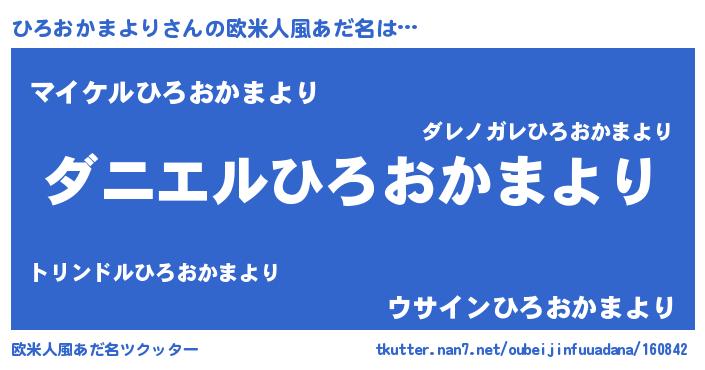 | 男性向けラノベタイトル風あだ名 | 『ノーゲーム・ノーヒロオカマヨリ』 |