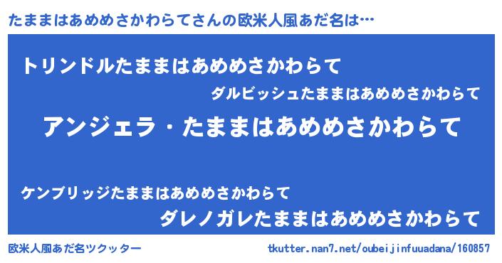 | ヘコむあだ名 | 『たままはあめめさかわらて(爆)』 |