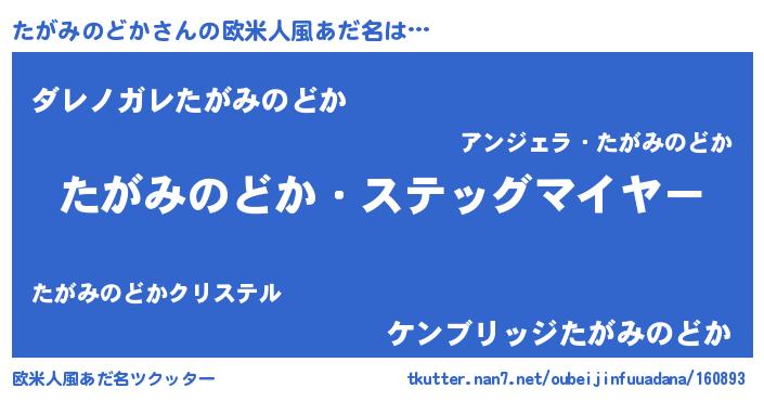 | 意味不明あだ名 | 『住所不定無職たがみのどか(47歳)』 |