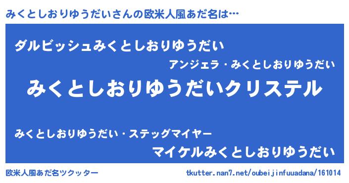 | ファンタジー風あだ名 | 『エターナルミクトシオリユウダイー』 |