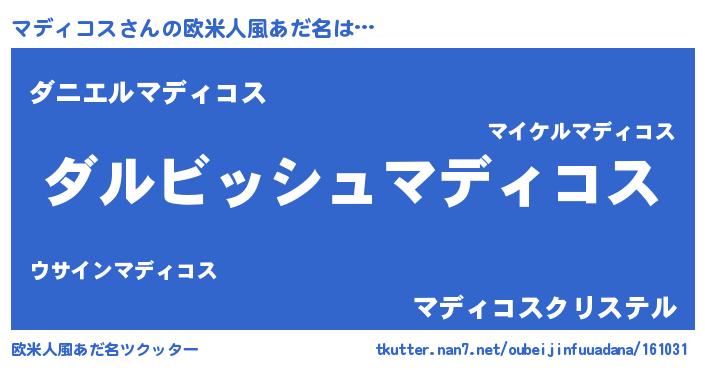 | 意味不明あだ名 | 『永久保存マディコス』 |
