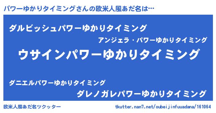 | 女子向けラノベタイトル風あだ名 | 『パワーゆかりタイミングの卵を拾いまして』 |