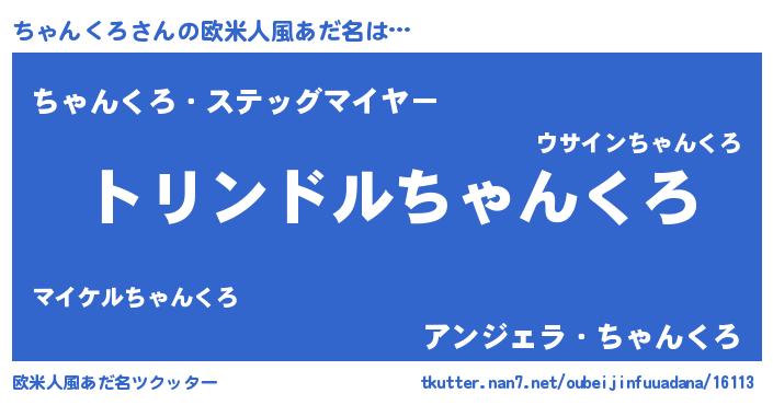 | 男性向けラノベタイトル風あだ名 | 『転生したらちゃんくろだった件』 |