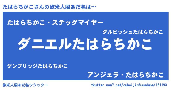 | 男性向けラノベタイトル風あだ名 | 『おまえをオタクにしてやるから、俺をたはらちかこにしてくれ! 』 |