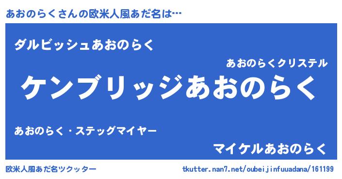 | 意味不明あだ名 | 『自称あおのらく』『永久保存あおのらく』 |