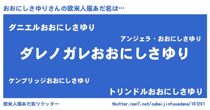 | 男性向けラノベタイトル風あだ名 | 『魔弾の王とおおにしさゆり』 |