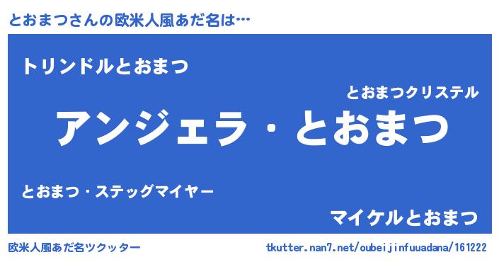 | 男性向けラノベタイトル風あだ名 | 『とおまつに滅ぼされるだけの簡単なお仕事です』 |