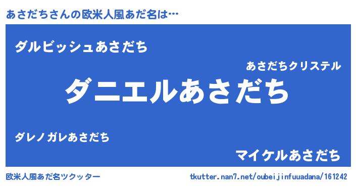 | 男性向けラノベタイトル風あだ名 | 『おまえをオタクにしてやるから、俺をあさだちにしてくれ! 』 |
