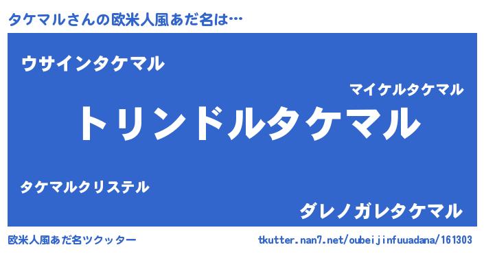 | 胡散臭い通販商品みたいなあだ名 | 『信頼と実績のサプリメント…その名も「タケマル」』 |