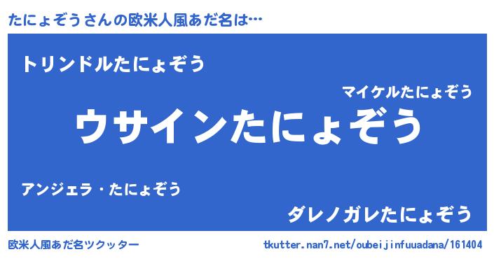 | 男性向けラノベタイトル風あだ名 | 『ダンジョンにたにょぞうを求めるのは間違っているだろうか』 |