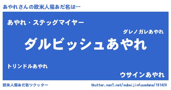 | ファンタジー風あだ名 | 『アヤディッシュ』『カークアヤラー』 |