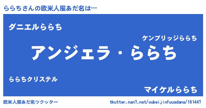 | 自動車の名前っぽいあだ名 | 『ランララギーニ』『ランR』『ラクア』 |