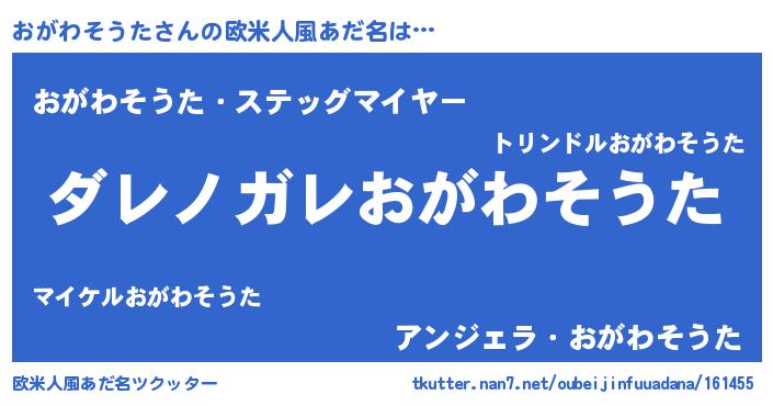 | 男性向けラノベタイトル風あだ名 | 『魔弾の王とおがわそうた』 |