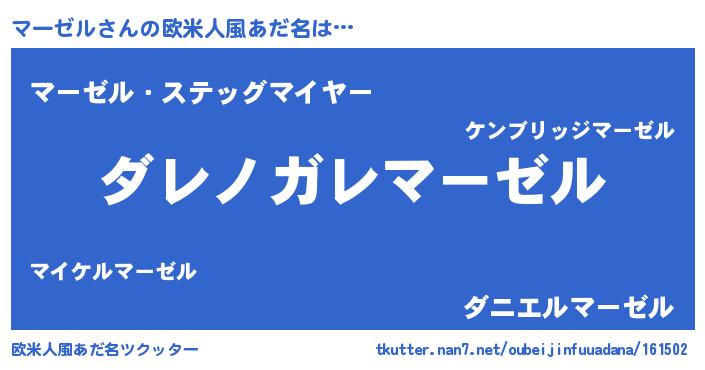 | 意味不明あだ名 | 『住所不定無職マーゼル(53歳)』 |