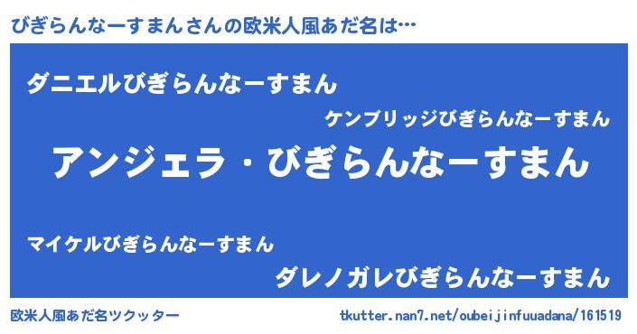 | ヒーロー風カッコイイあだ名 | 『正義の使者びぎらんなーすまん』 |