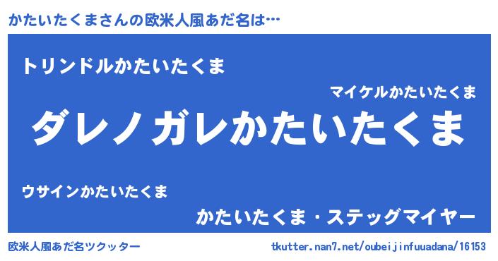 | ヒーロー風カッコイイあだ名 | 『仮面カタダー』『スーパーカタイタクマ』 |