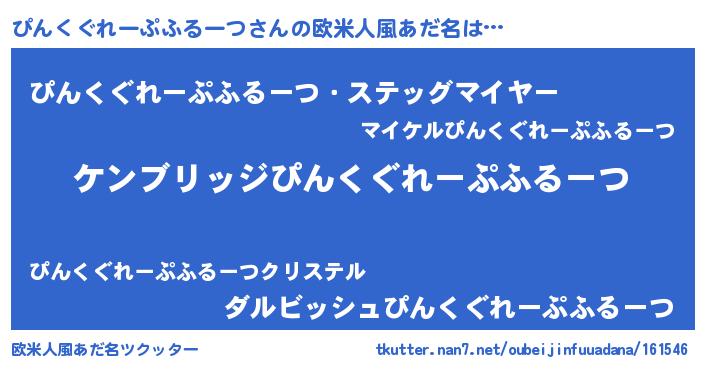 | 女子向けラノベタイトル風あだ名 | 『ぴんくぐれーぷふるーつアンティーク』 |