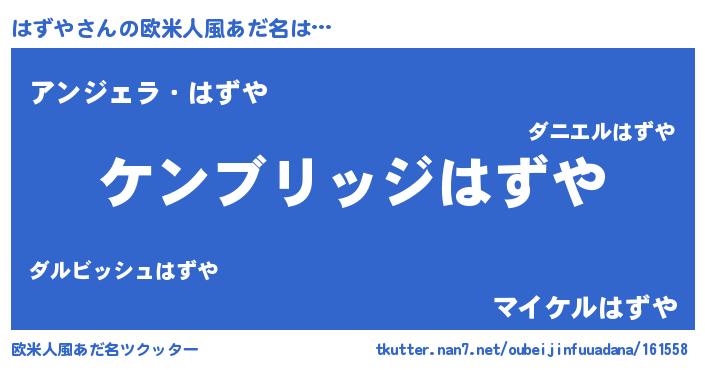 | 男性向けラノベタイトル風あだ名 | 『Re:はずやから始める異世界生活』 |