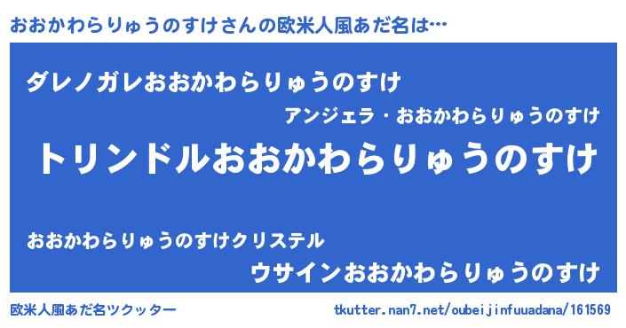| 女子向けラノベタイトル風あだ名 | 『おおかわらりゅうのすけの玉の輿計画!』 |