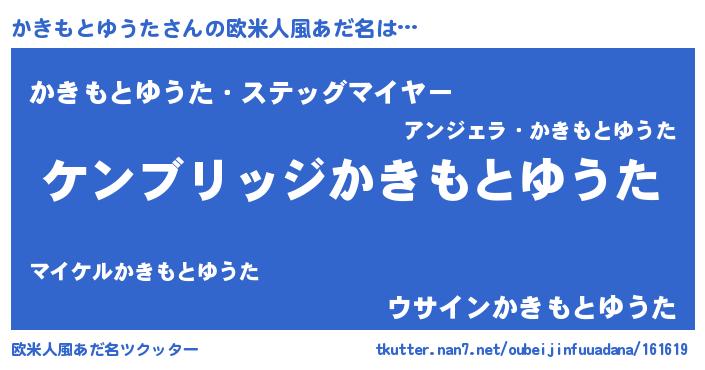 | 女子向けラノベタイトル風あだ名 | 『かきもとゆうたストレイドッグス』 |