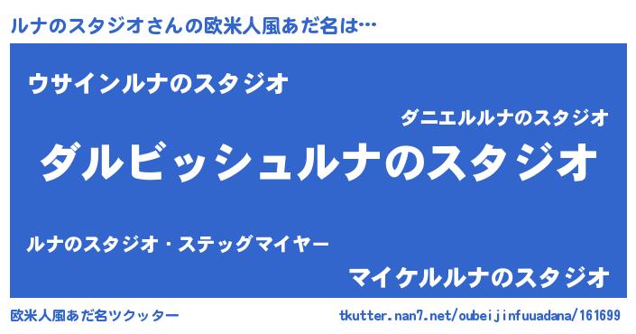 | 男性向けラノベタイトル風あだ名 | 『ルナのスタジオという概念が存在しない退屈な世界 』 |