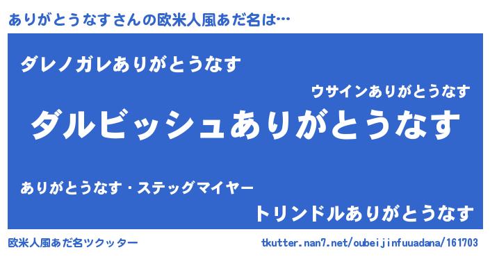 | ヘコむあだ名 | 『ありがとうなす(小並感)』『ありを』 |