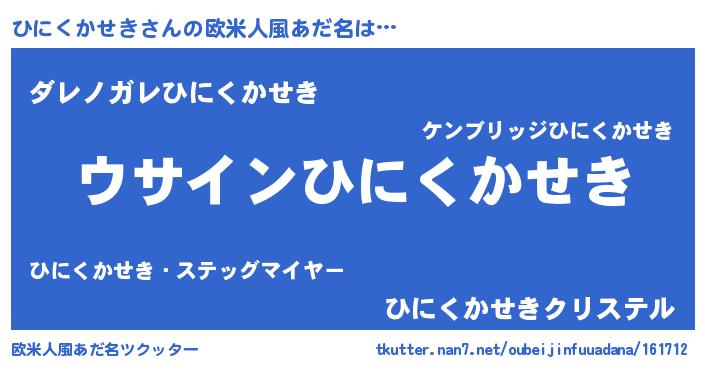 | 女子向けラノベタイトル風あだ名 | 『ひにくかせきは平凡を望む』 |