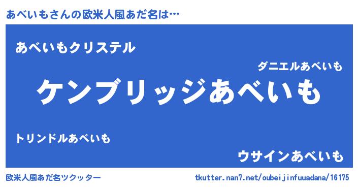 | 女子向けラノベタイトル風あだ名 | 『あべいもストレイドッグス』 |