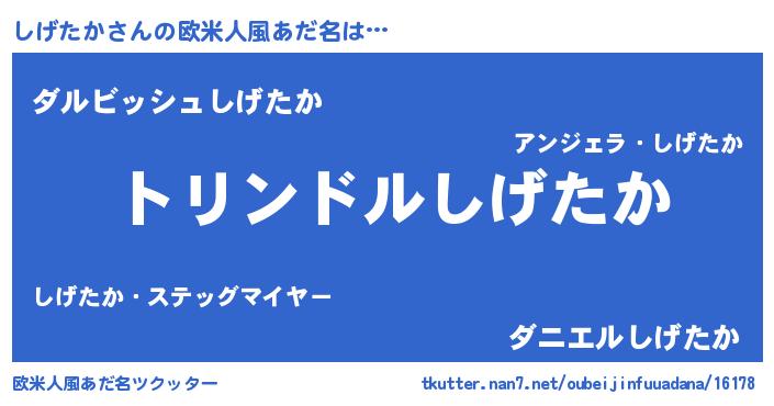 | 男性向けラノベタイトル風あだ名 | 『しげたか~年齢イコール彼女いない歴の魔法使い~』 |
