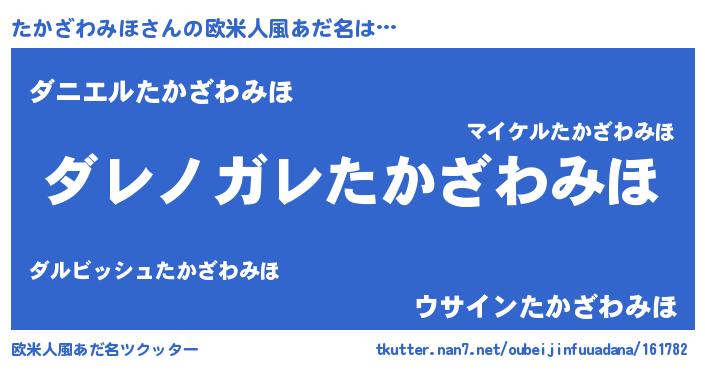 | 男性向けラノベタイトル風あだ名 | 『魔弾の王とたかざわみほ』 |