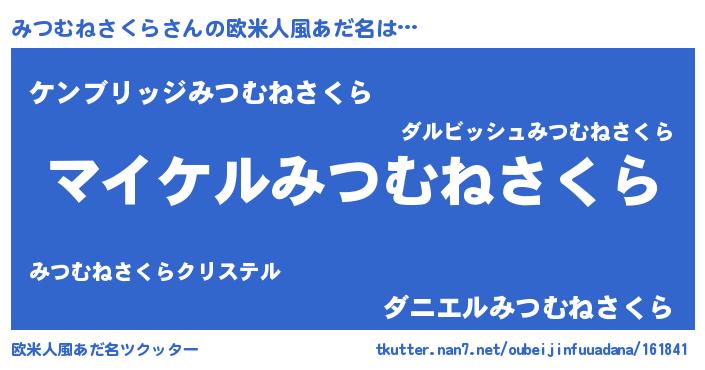 | 男性向けラノベタイトル風あだ名 | 『みつむねさくらの憂鬱』 |
