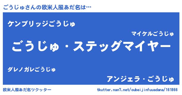 | 男性向けラノベタイトル風あだ名 | 『うちのごうじゅが世界を掌握している!』 |