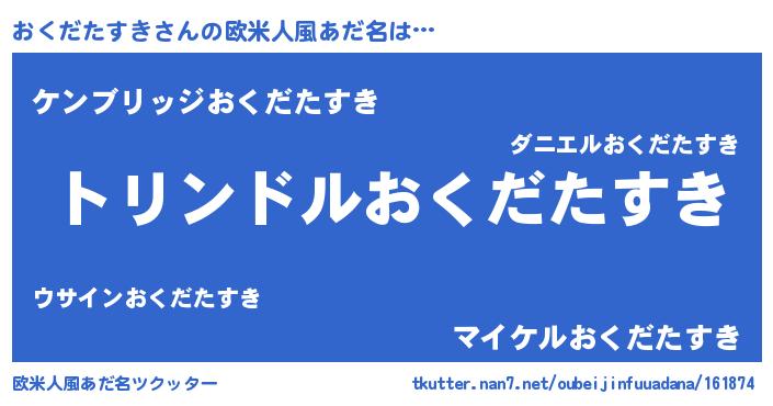 | 男性向けラノベタイトル風あだ名 | 『おくだたすき~年齢イコール彼女いない歴の魔法使い~』 |