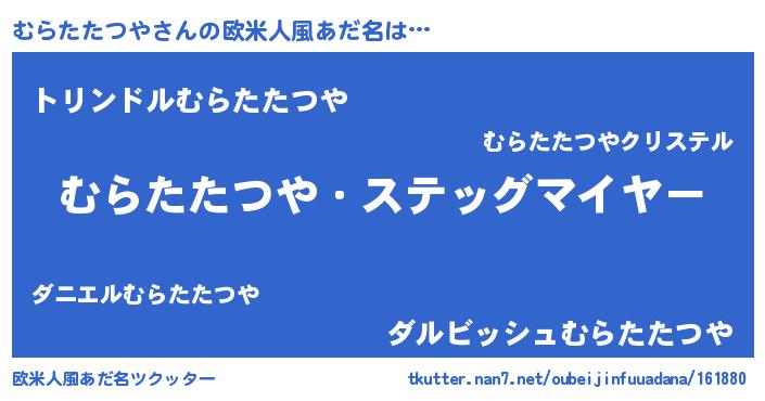 | ヒーロー風カッコイイあだ名 | 『ネオムラタタツヤ』『魔戒騎士ムラ』 |