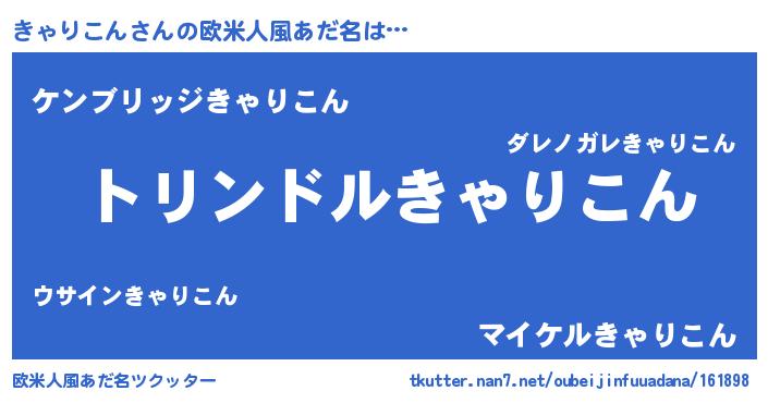 | 女子向けラノベタイトル風あだ名 | 『きゃりこんの玉の輿計画!』 |