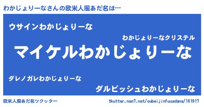 | 男性向けラノベタイトル風あだ名 | 『ワカジョリーナアートオンライン』 |