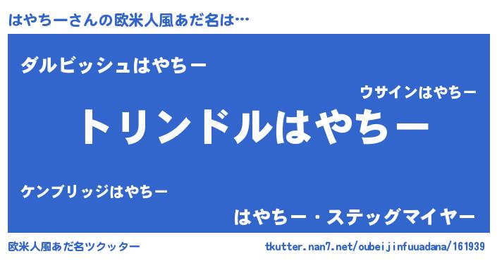 | 男性向けラノベタイトル風あだ名 | 『転生したらはやちーだった件』 |